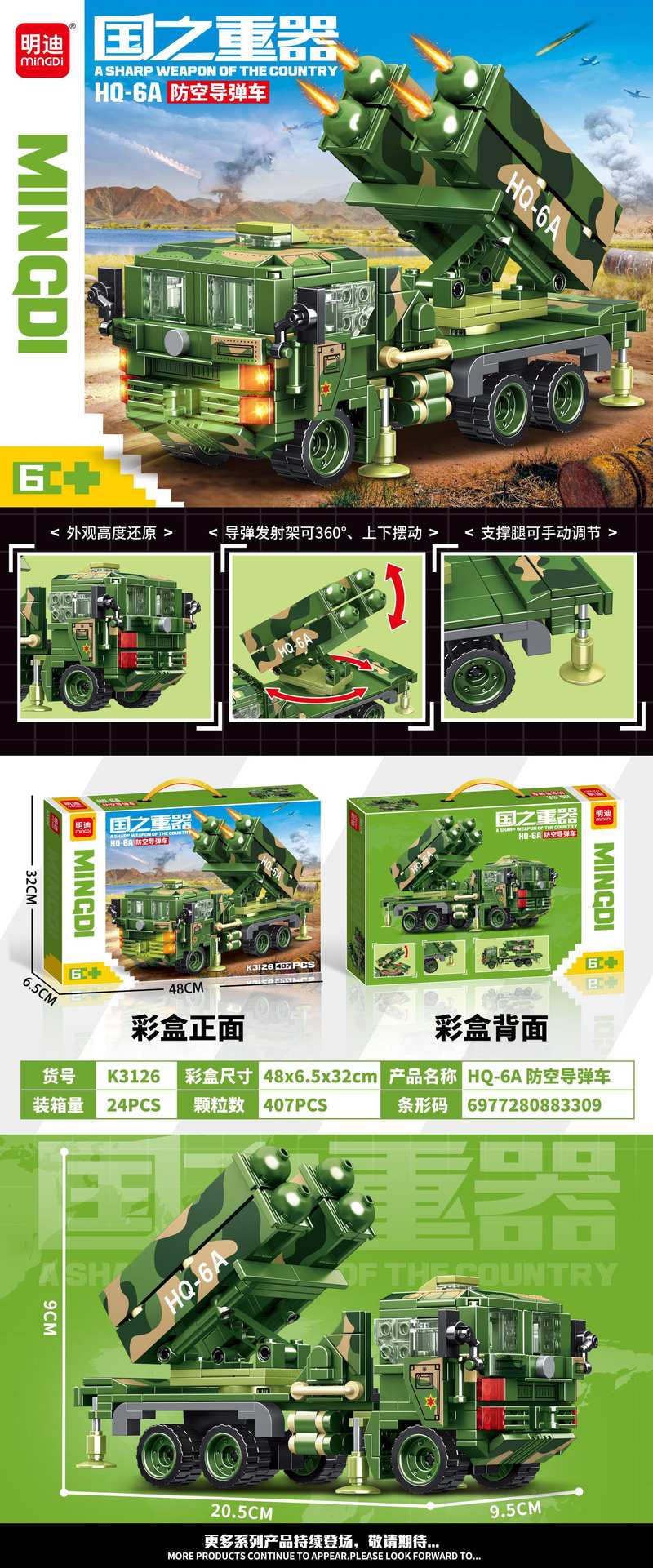 国之重器:HQ-6A 防空导弹车属于军事系列积木套组,整个套组包含 407 个积木颗粒。首发于2026年。