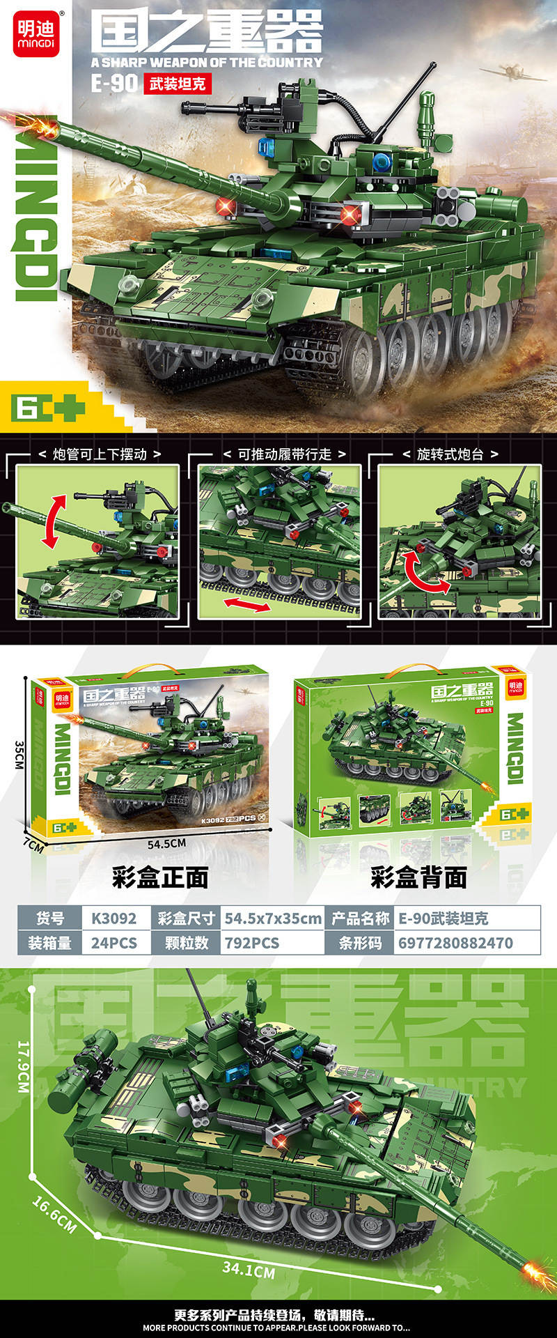 国之重器:E-90 武装坦克属于军事系列积木套组,整个套组包含 792 个积木颗粒。首发于2026年。