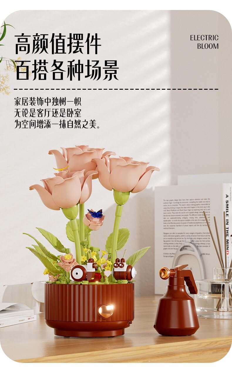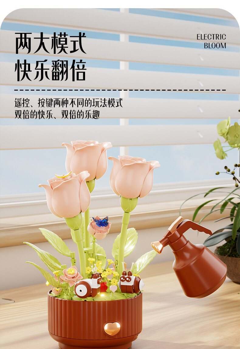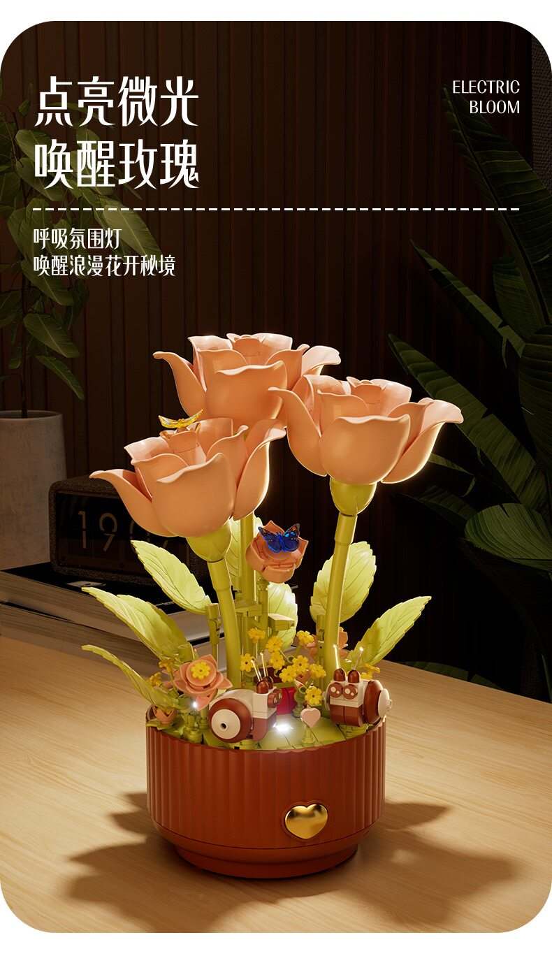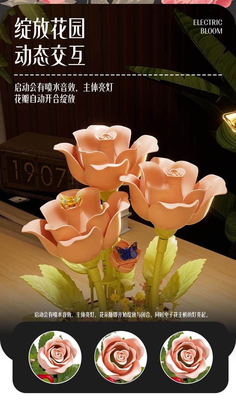绽放的浪漫电动积木花