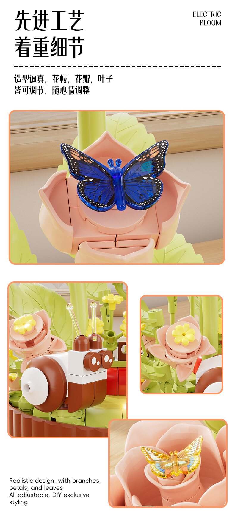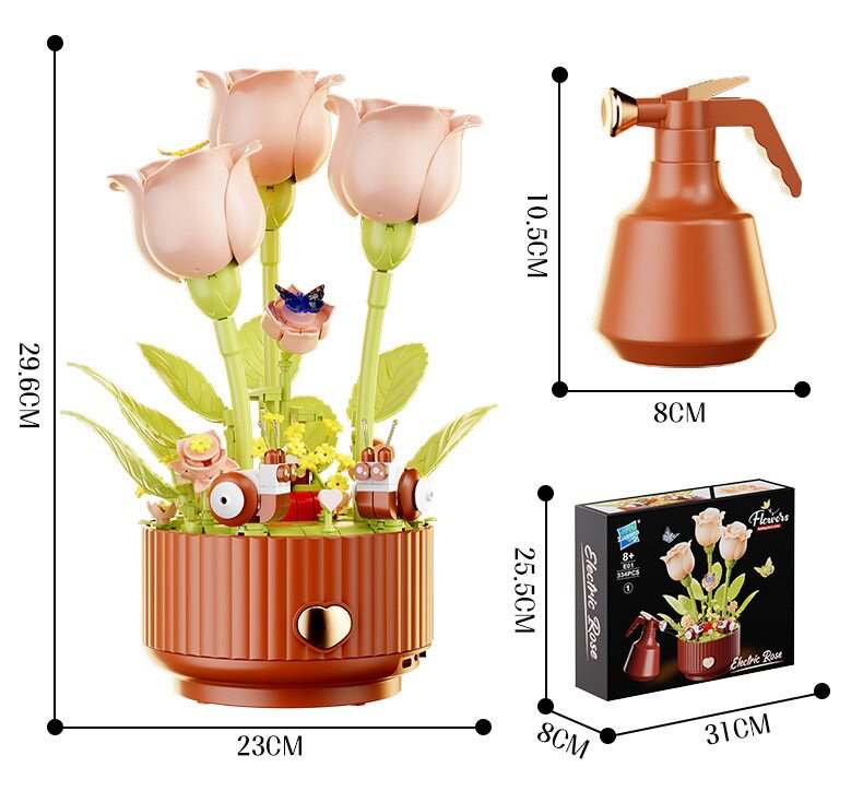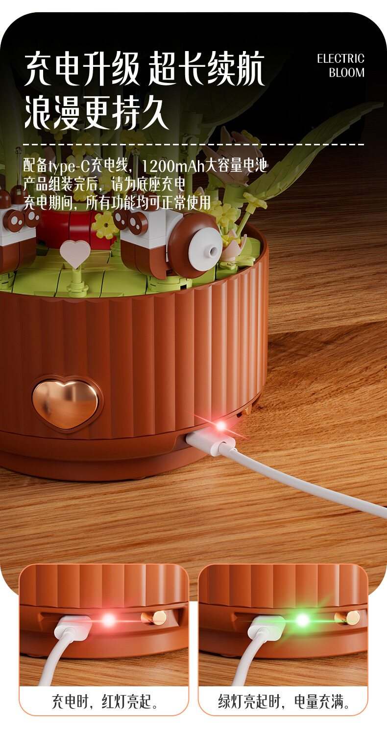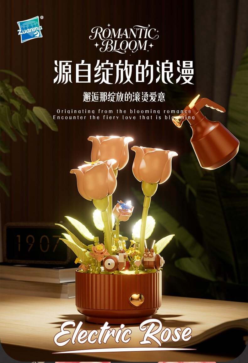 绽放的浪漫电动积木花