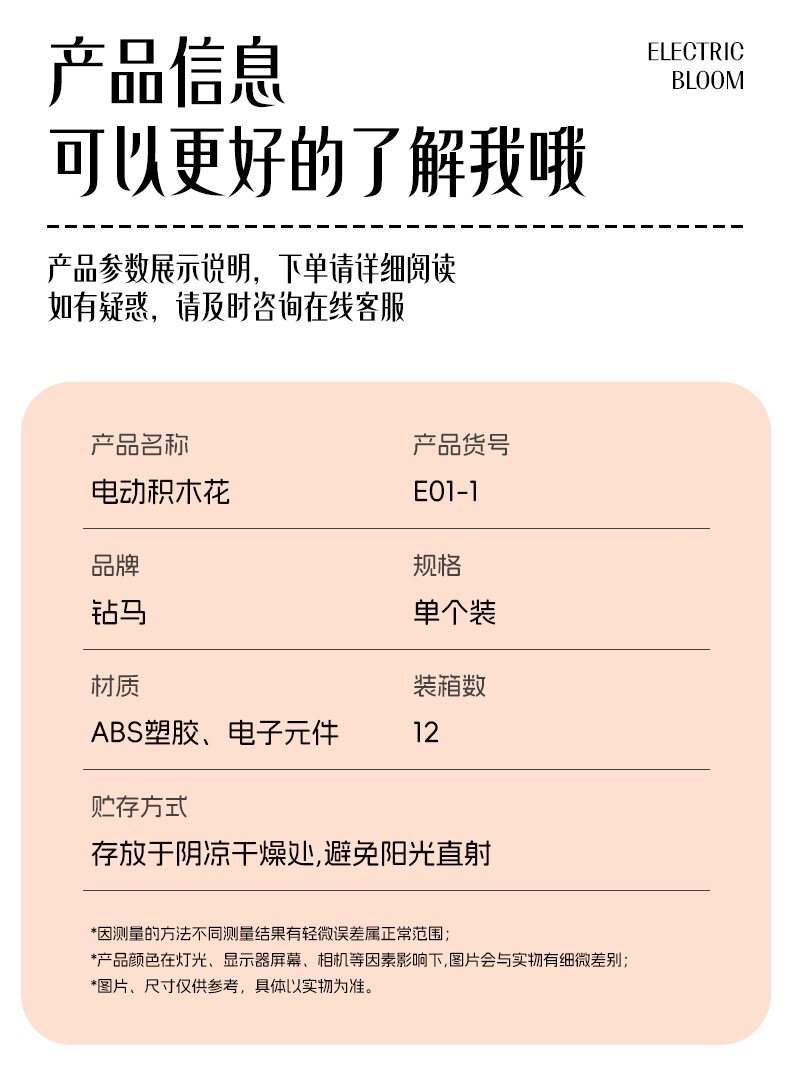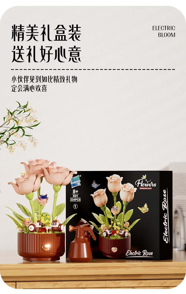 绽放的浪漫电动积木花(钻马Zuanma E01-1)