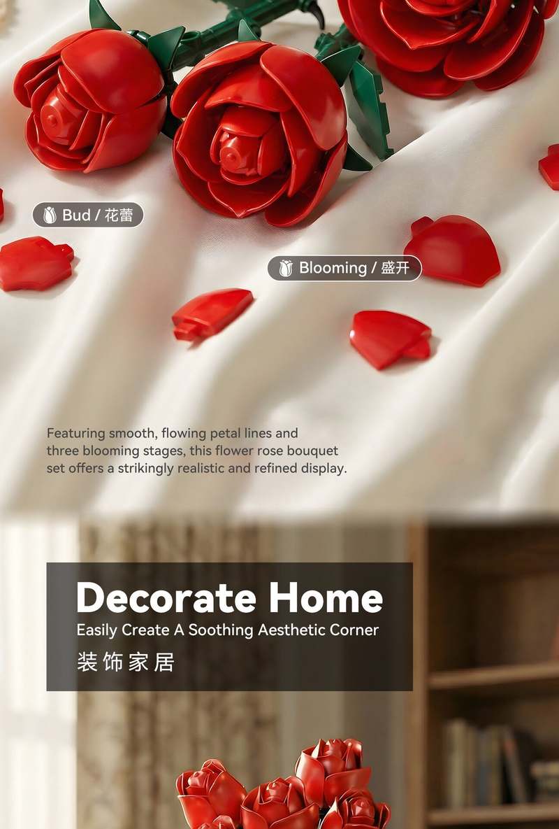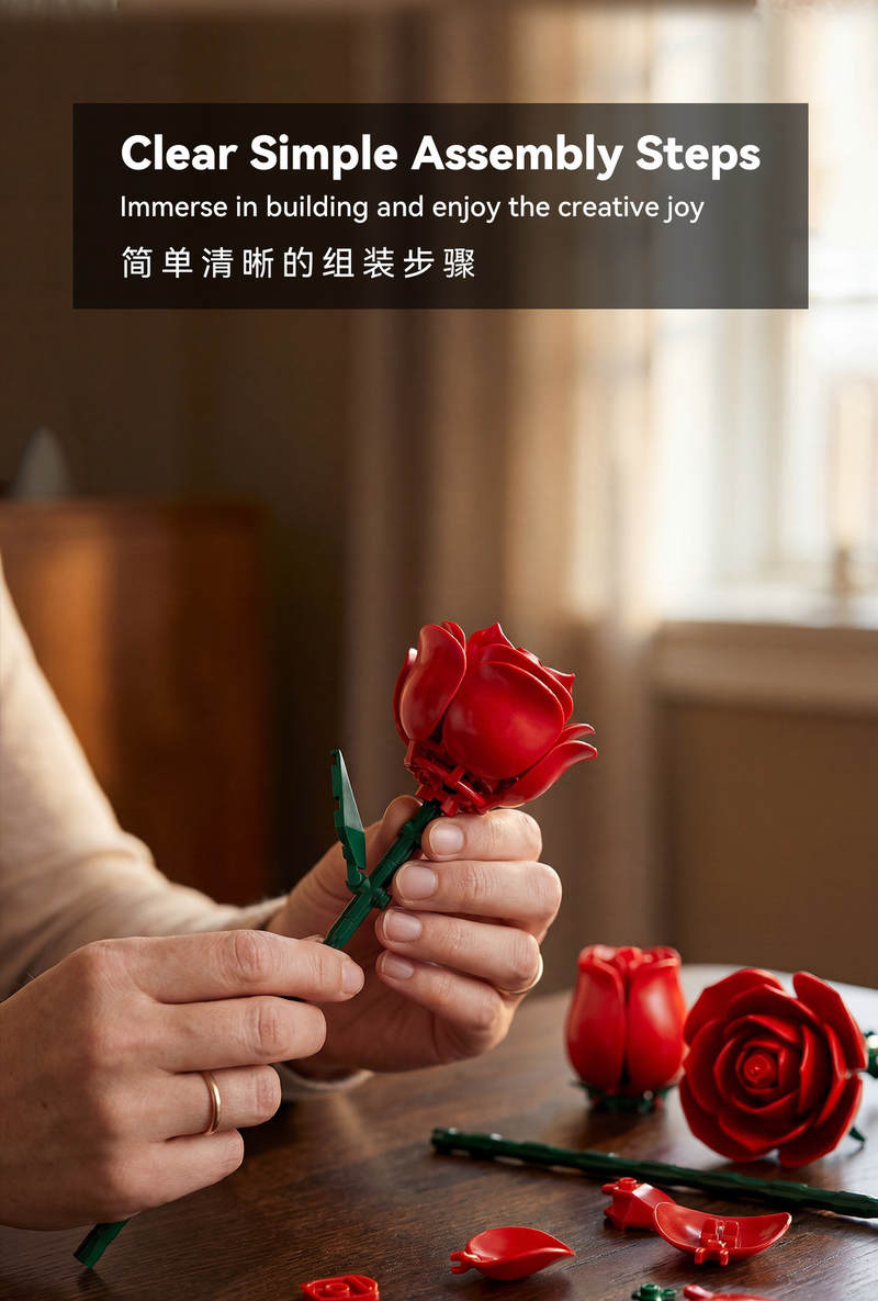 玫瑰属于花卉植物系列积木套组,整个套组包含 436 个积木颗粒。首发于2026年。