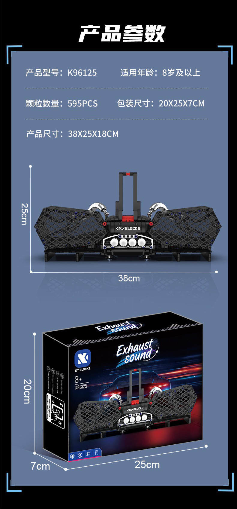 兰博基尼排气蓝牙音响(Exhaust Sound)属于机械组系列积木套组,整个套组包含 595 个积木颗粒。首发于2026年。