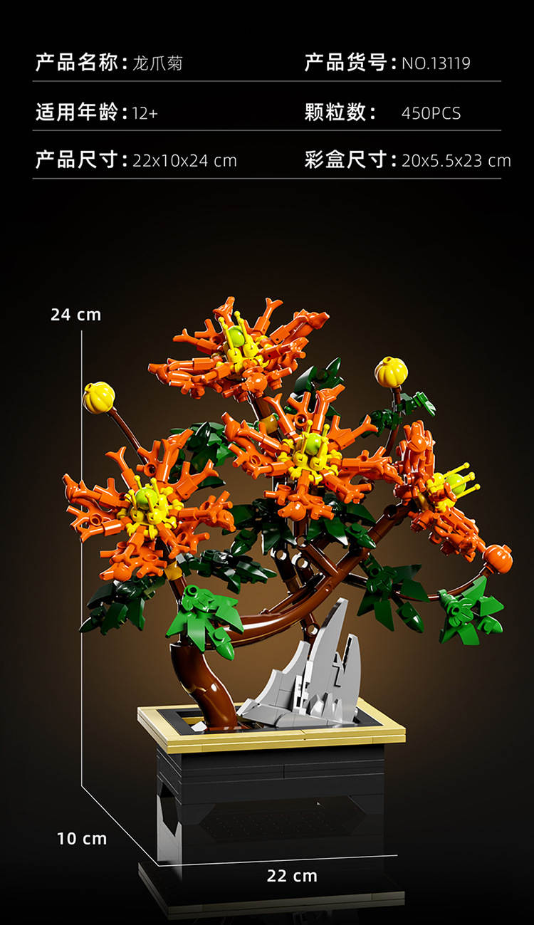 龙爪菊(Dragon Claw Mum)属于花卉植物系列积木套组,整个套组包含 450 个积木颗粒。首发于2025年。