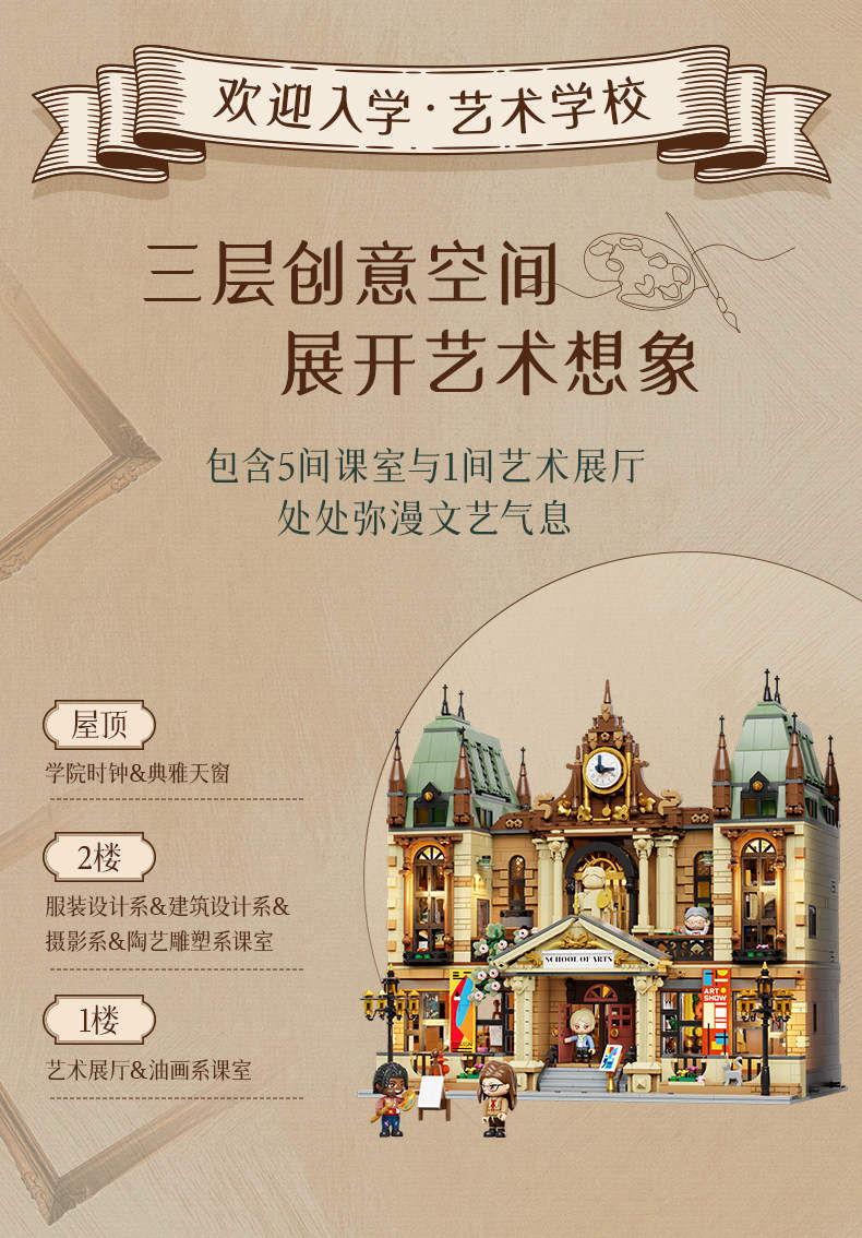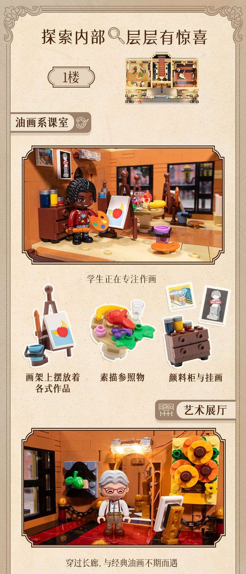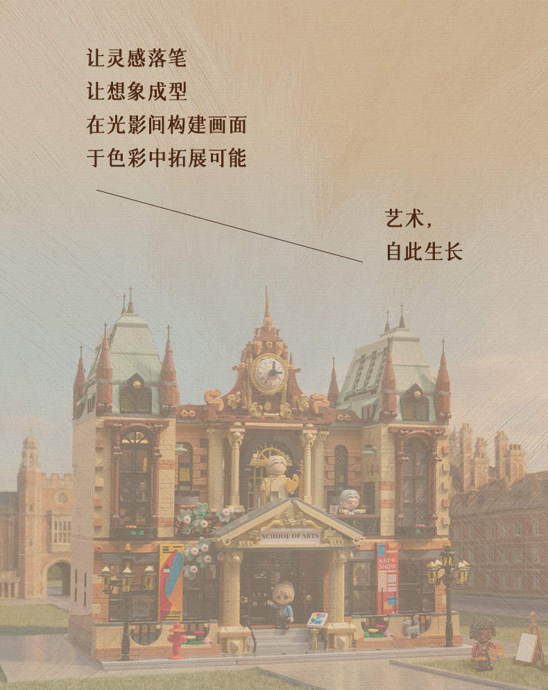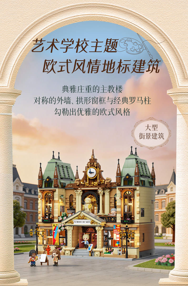 艺术学校(School of Arts)属于街景系列积木套组,整个套组包含 3163 个积木颗粒。首发于2026年。