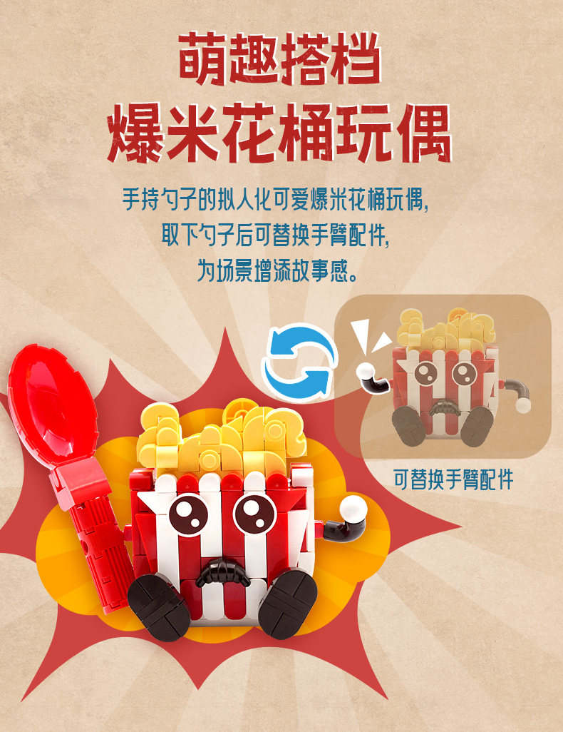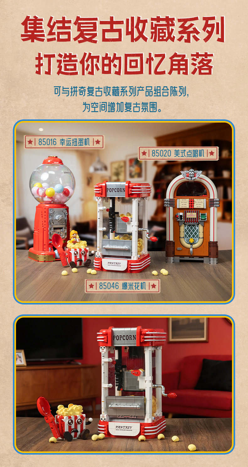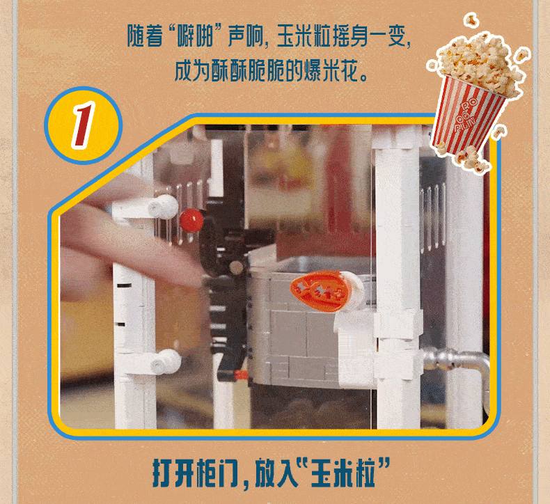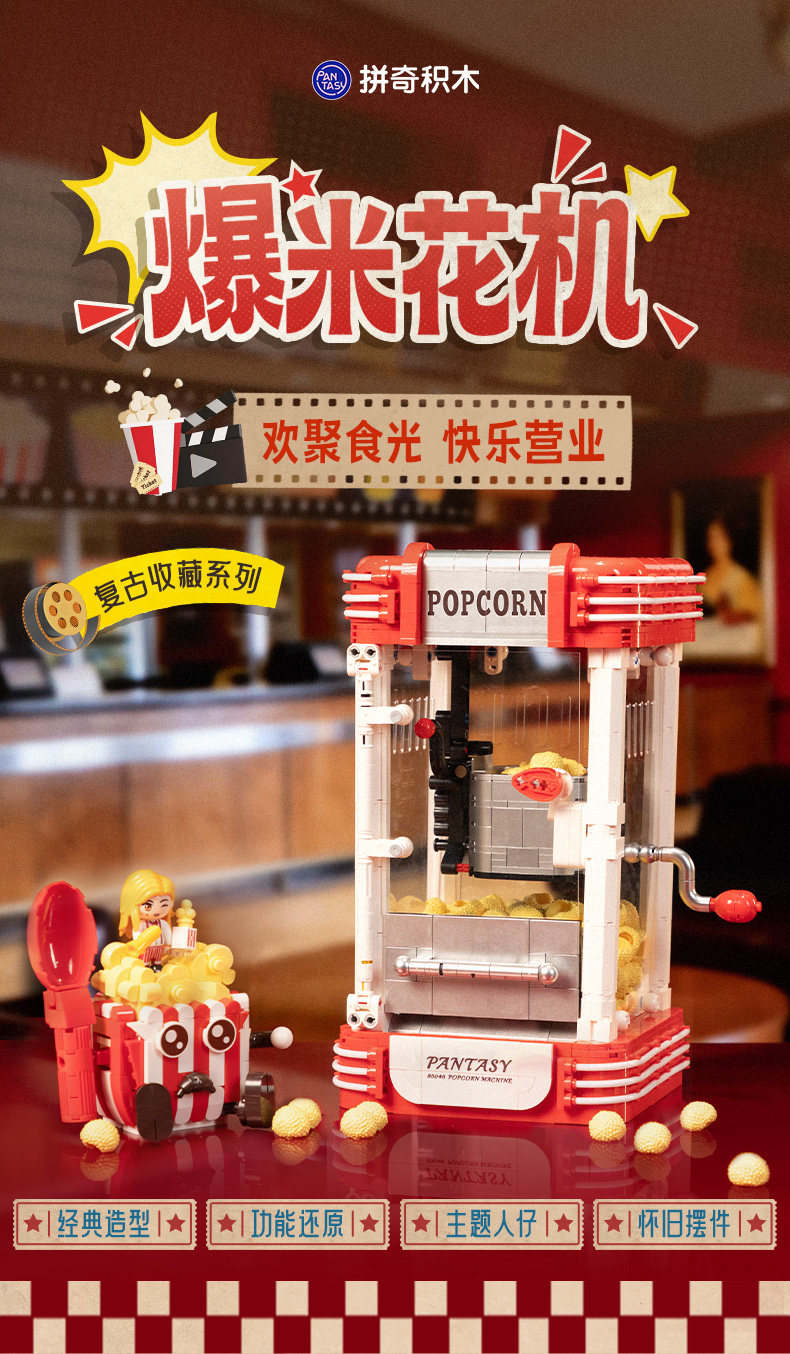 复古爆米花机属于创意百变高手系列积木套组,整个套组包含 1201 个积木颗粒。首发于2026年。