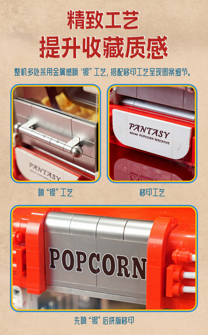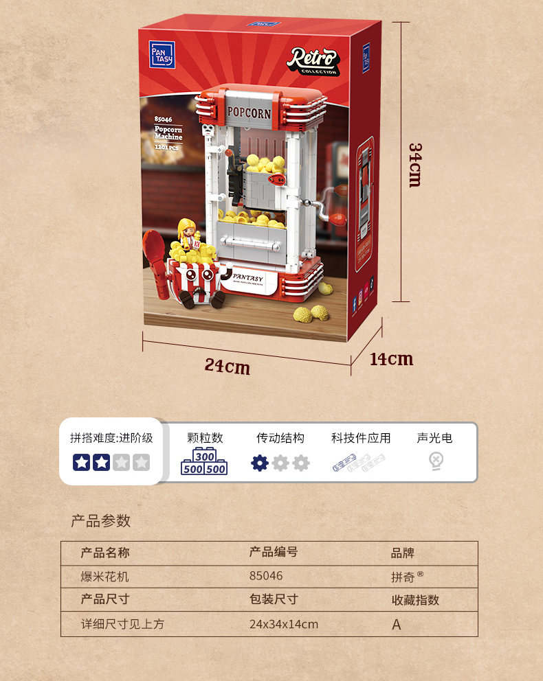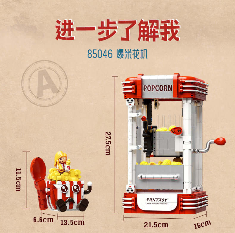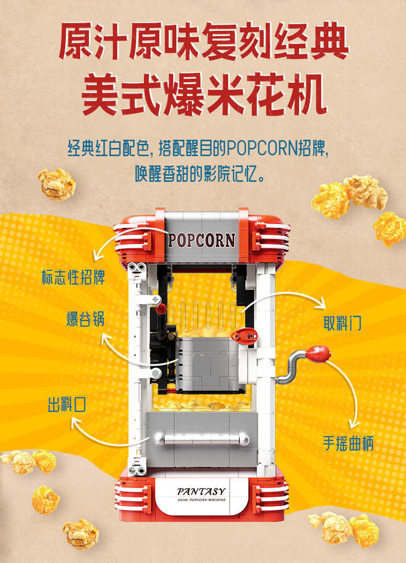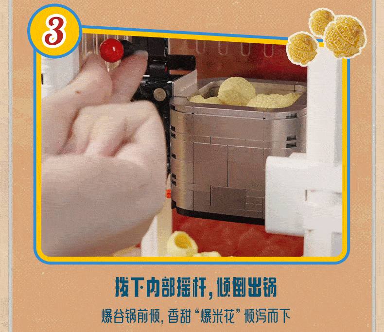复古爆米花机属于创意百变高手系列积木套组,整个套组包含 1201 个积木颗粒。首发于2026年。