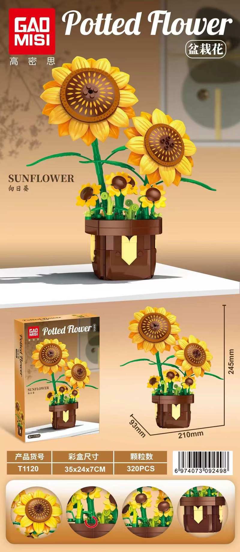 向日葵 盆栽花(Sunflower)属于花卉植物系列积木套组,整个套组包含 320 个积木颗粒。首发于2026年。