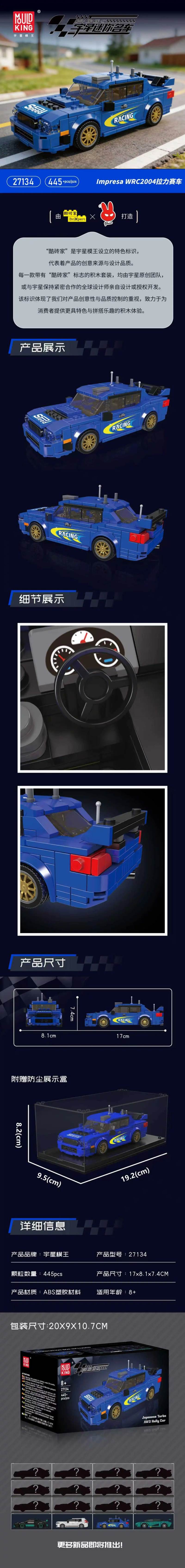 Impresa WRC2004 拉力赛车(Subaru Impresa)属于超级赛车系列积木套组,整个套组包含 445 个积木颗粒。首发于2026年。