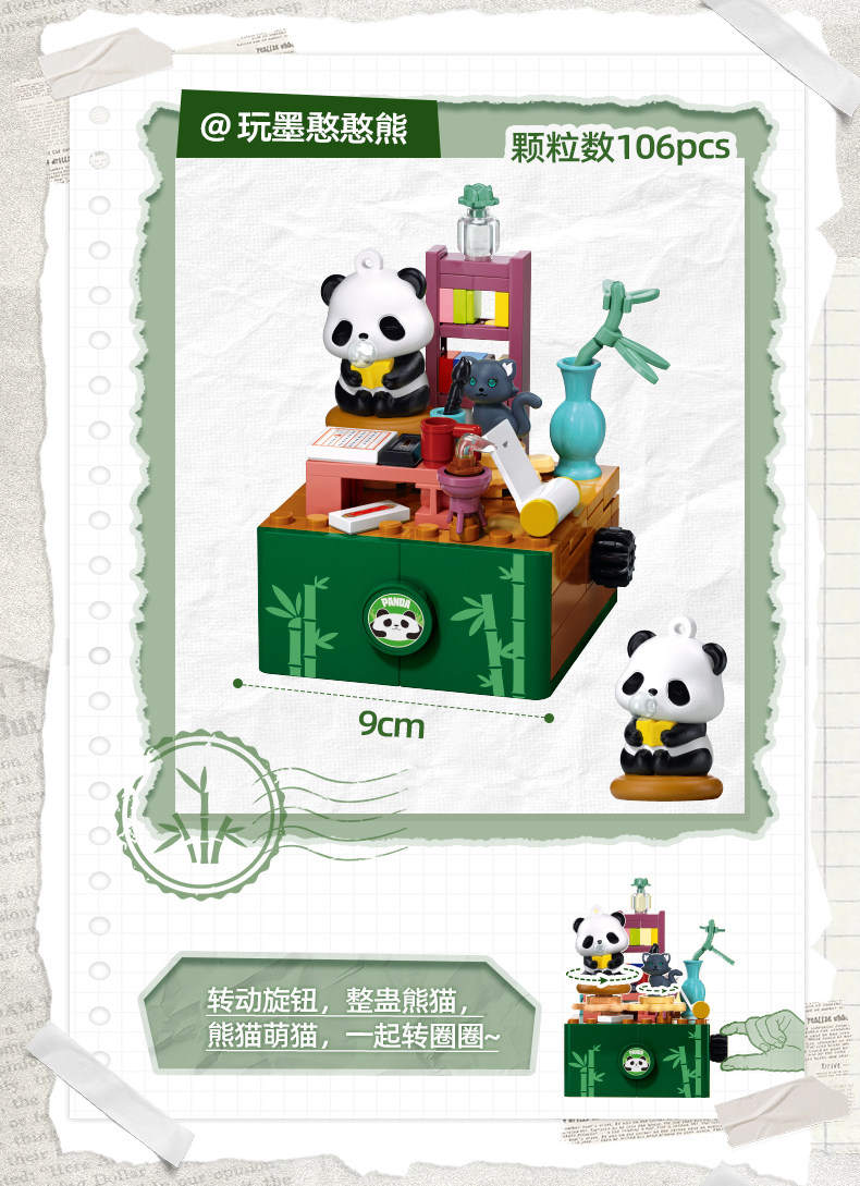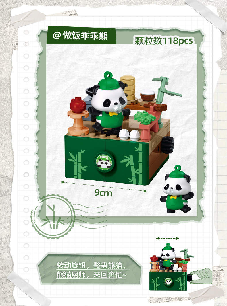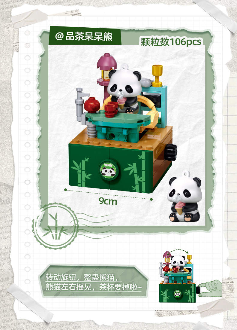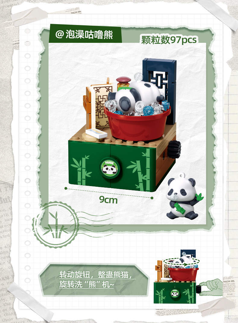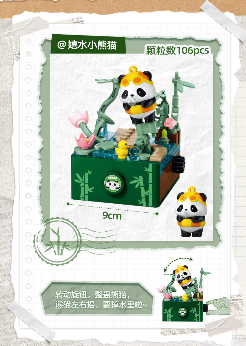 【积木小站】趣味熊猫 6款 嬉水小顽熊、做饭乖乖熊、玩墨憨憨熊、品茶呆呆熊、爬竹懒懒熊、泡澡咕噜熊