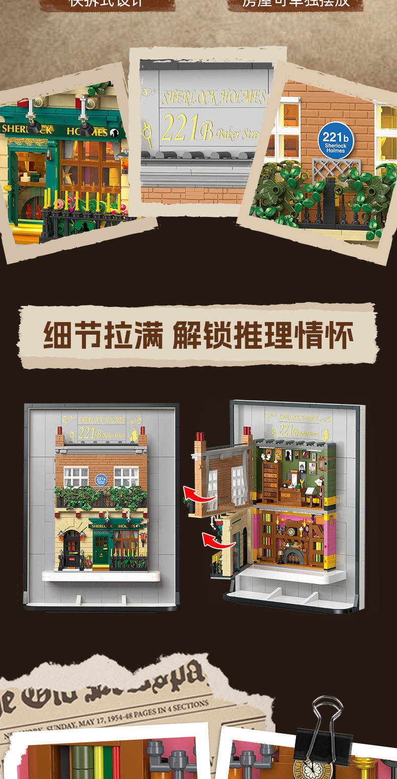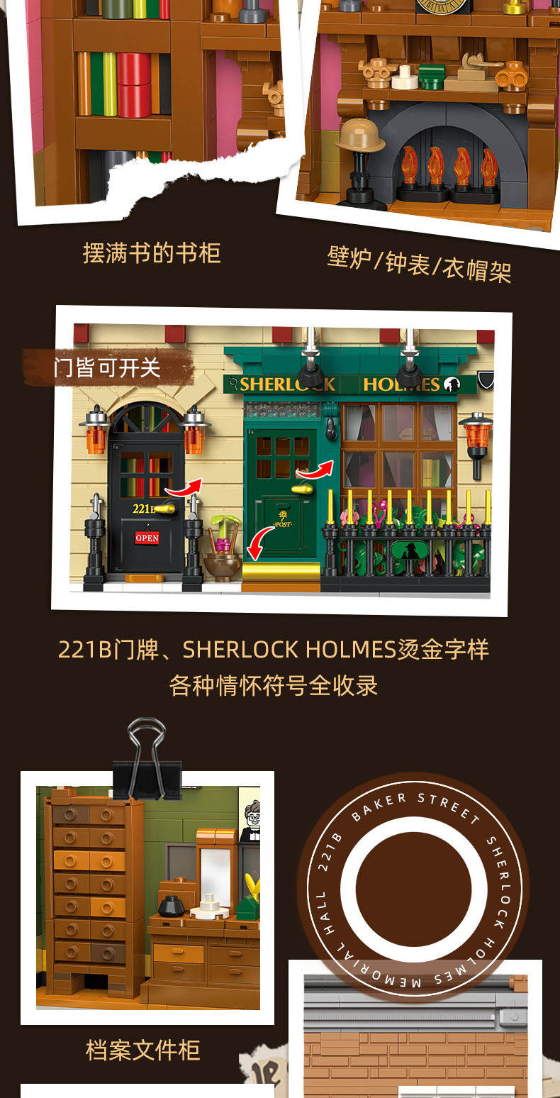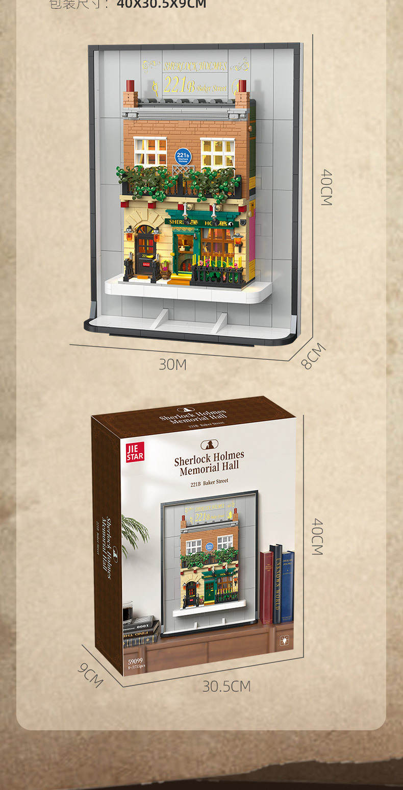 福尔摩斯纪念馆 探访贝克街221B(Sherlock Holmes Memorial Hall)属于艺术生活系列积木套组,整个套组包含 1755 个积木颗粒。首发于2026年。