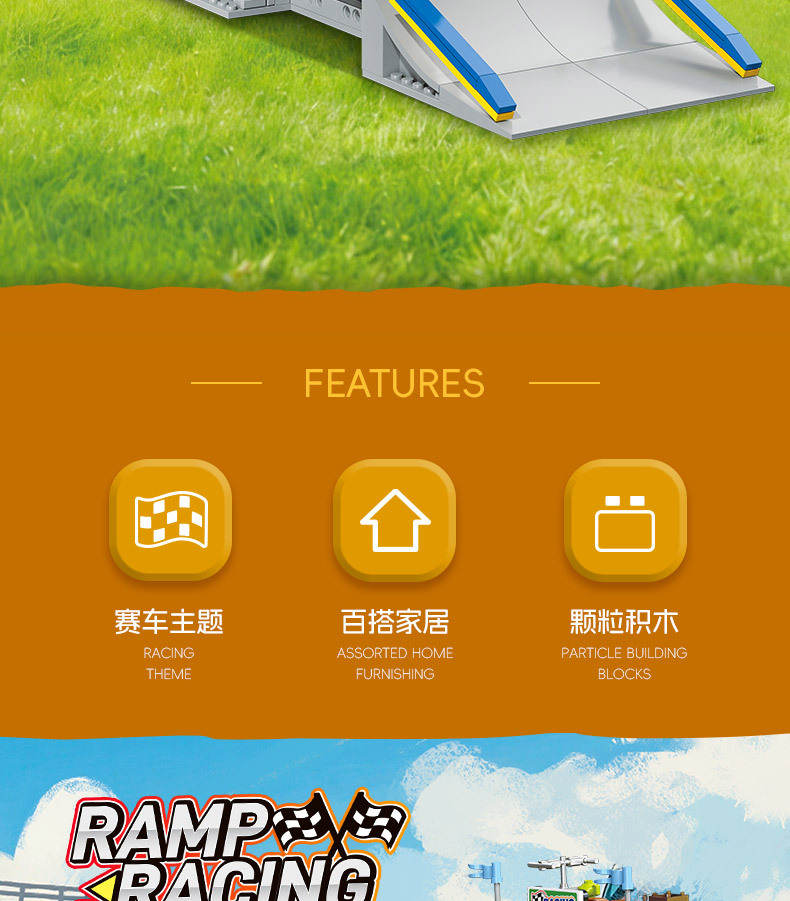坡道赛车(Ramp Racing)属于游乐场系列积木套组,整个套组包含 678 个积木颗粒。首发于2026年。