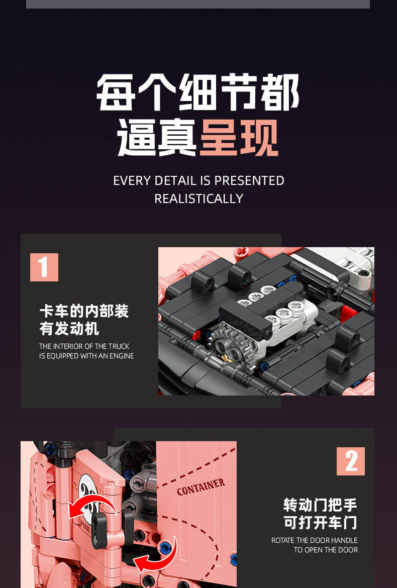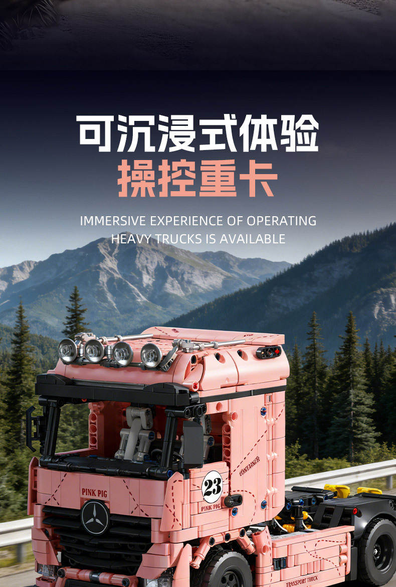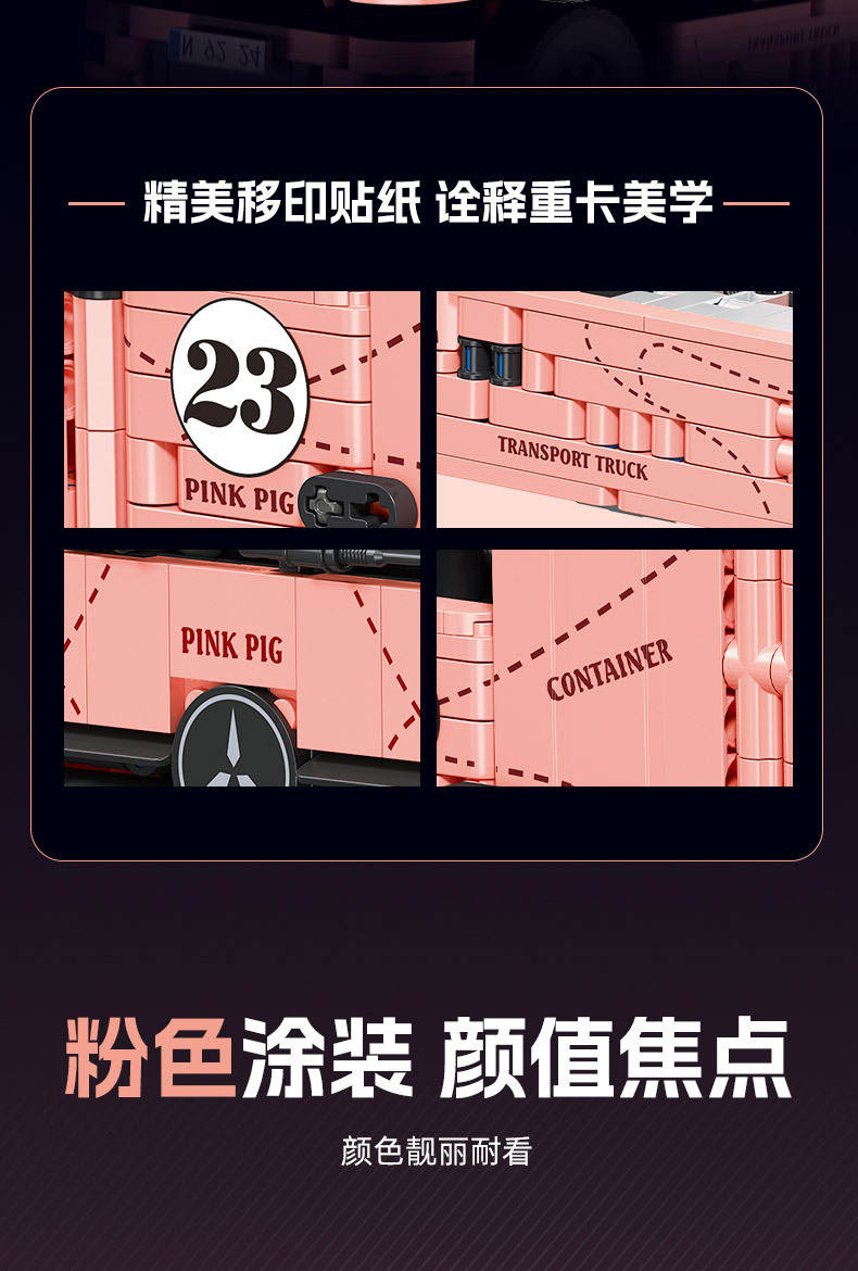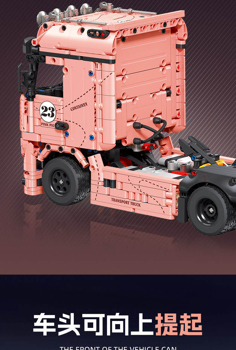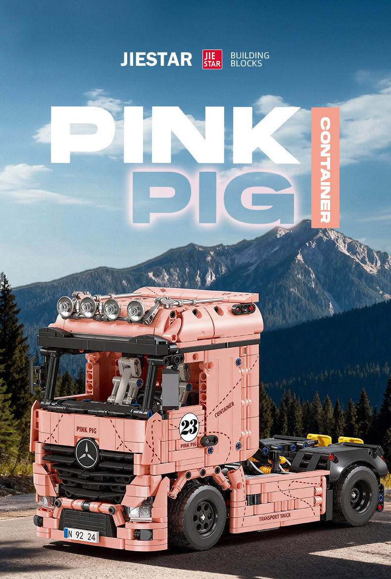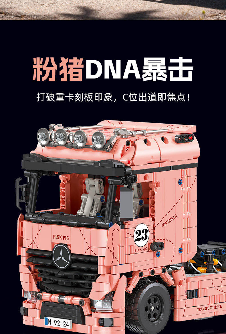 货柜车头粉猪拖头(Pink Pig Container)属于机械组系列积木套组,整个套组包含 1296 个积木颗粒。首发于2026年。
