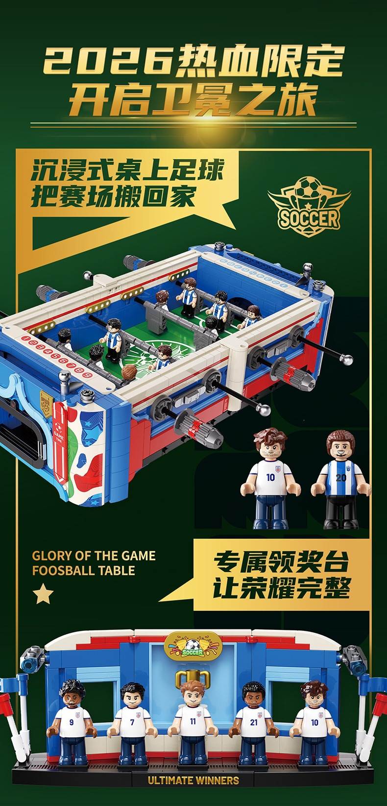 荣耀之巅足球机(Glory of the Game Foosball Table)属于创意百变高手系列积木套组。首发于2026年。