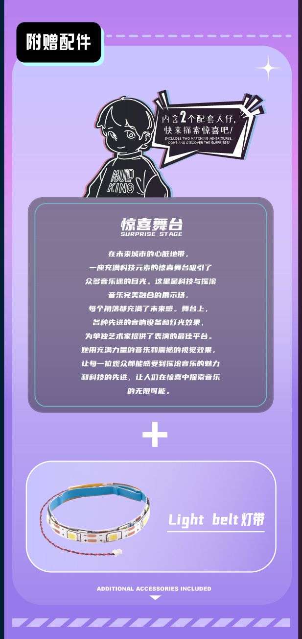 百变创意:惊喜舞台(Surprise Stage)属于主题系列系列积木套组,整个套组包含 284 个积木颗粒。首发于2026年。