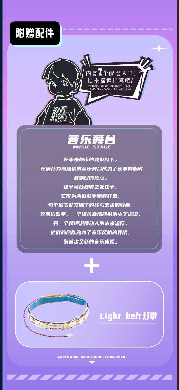 百变创意:音乐舞台(Music Stage)属于主题系列系列积木套组,整个套组包含 498 个积木颗粒。首发于2026年。