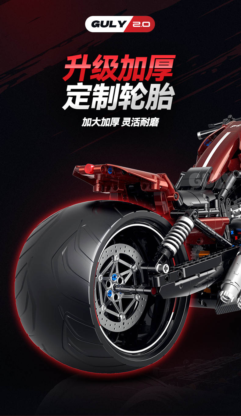 1251PCS。轮毂镂空,非原版。前轮配越野胎,非原版。排气管等部分电镀。