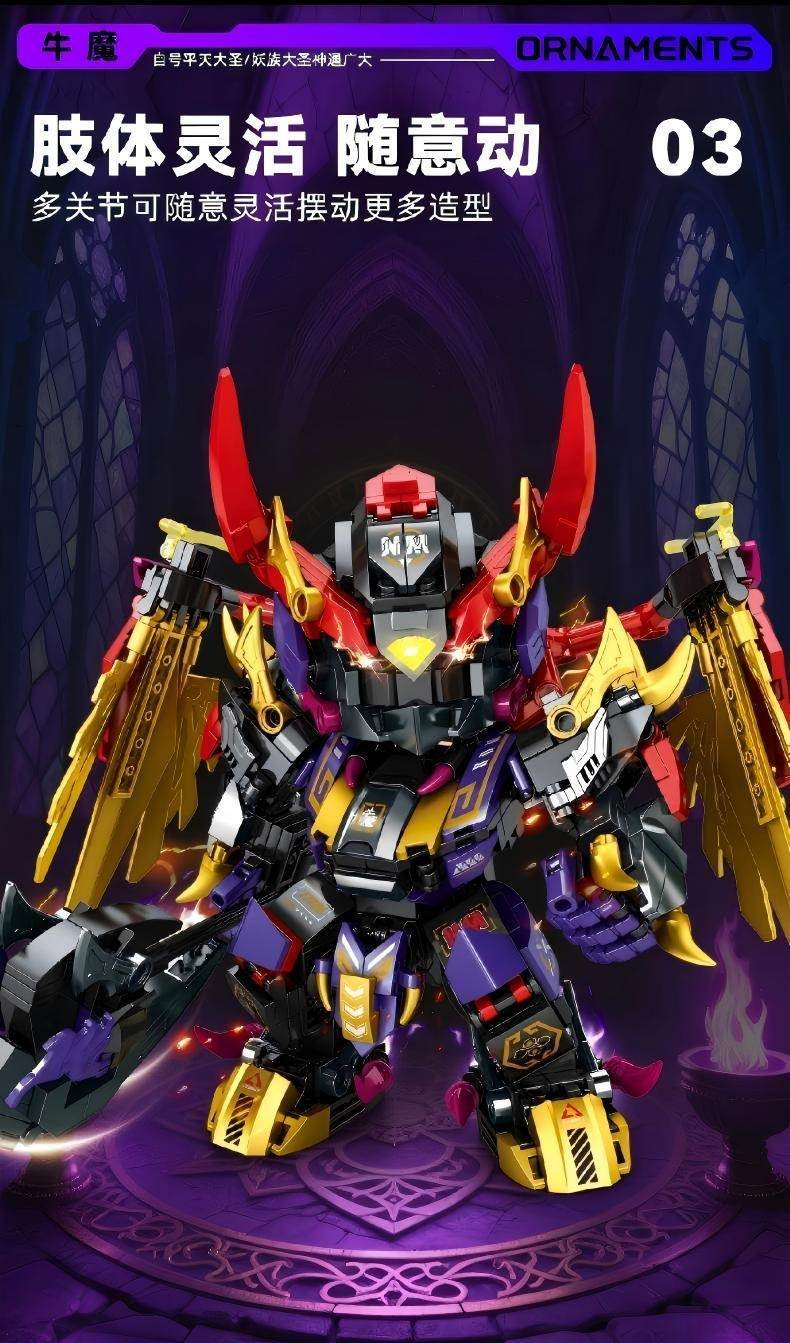 西游机甲:牛魔 大力牛魔王 国风摆件属于主题系列系列积木套组,整个套组包含 614 个积木颗粒。首发于2026年。