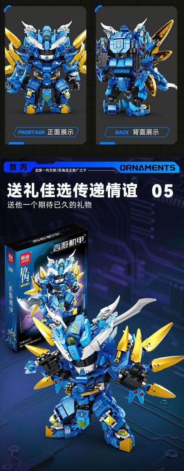 【积木小站】西游机甲:东海三太子 敖丙 国风摆件