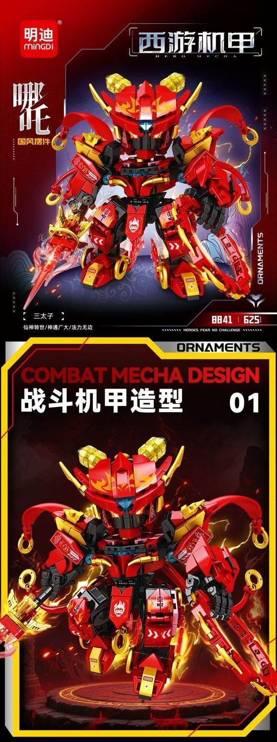 西游机甲:哪吒 三太子 国风摆件属于主题系列系列积木套组,整个套组包含 625 个积木颗粒。首发于2026年。