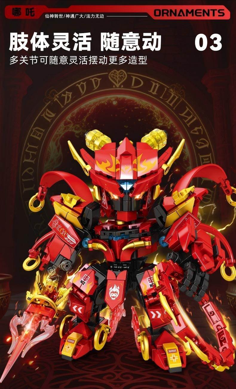 【积木小站】西游机甲:哪吒 三太子 国风摆件