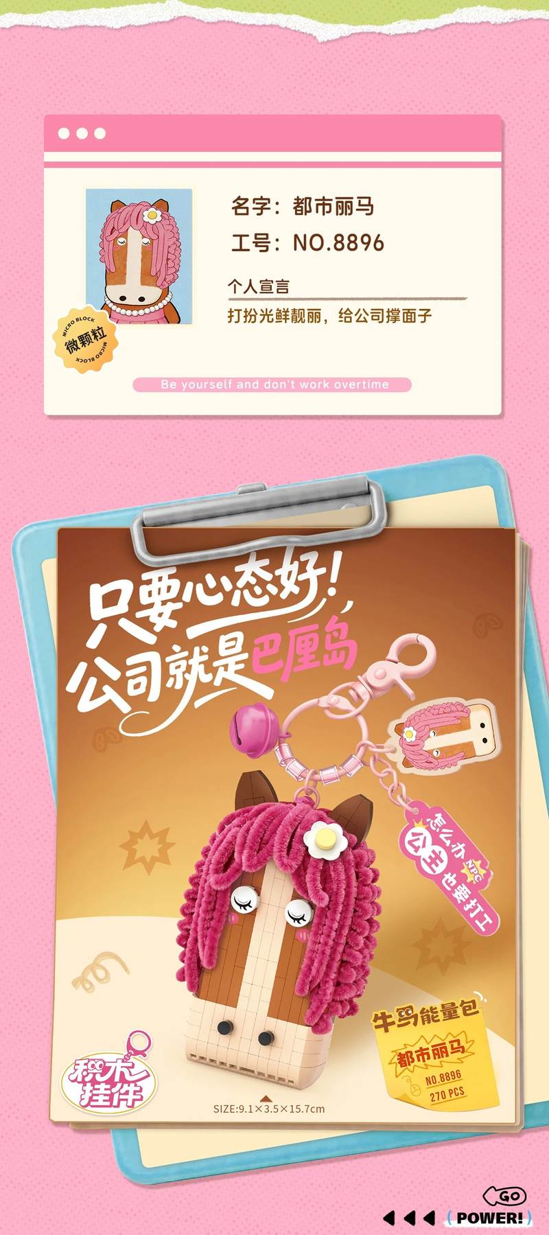 头牌牛马能量包:都市丽马属于钥匙链系列积木套组,整个套组包含 270 个积木颗粒。首发于2026年。