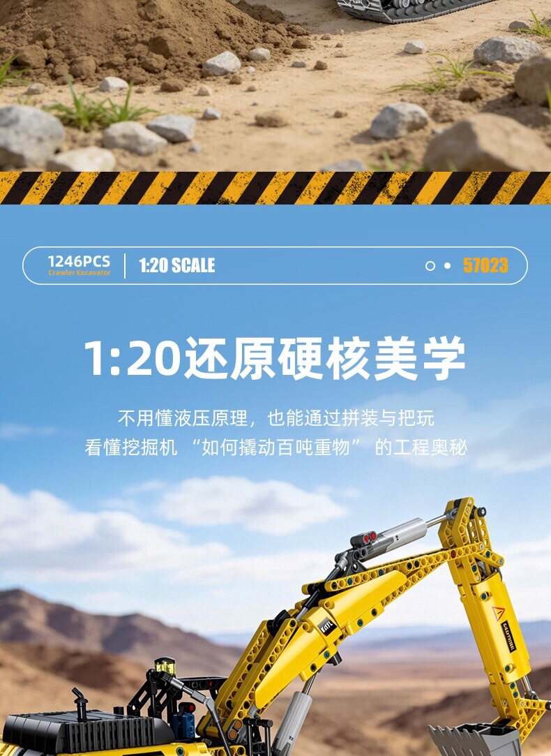 全功能履带电动挖掘机 1:20属于机械组系列积木套组,整个套组包含 1246 个积木颗粒。首发于2026年。